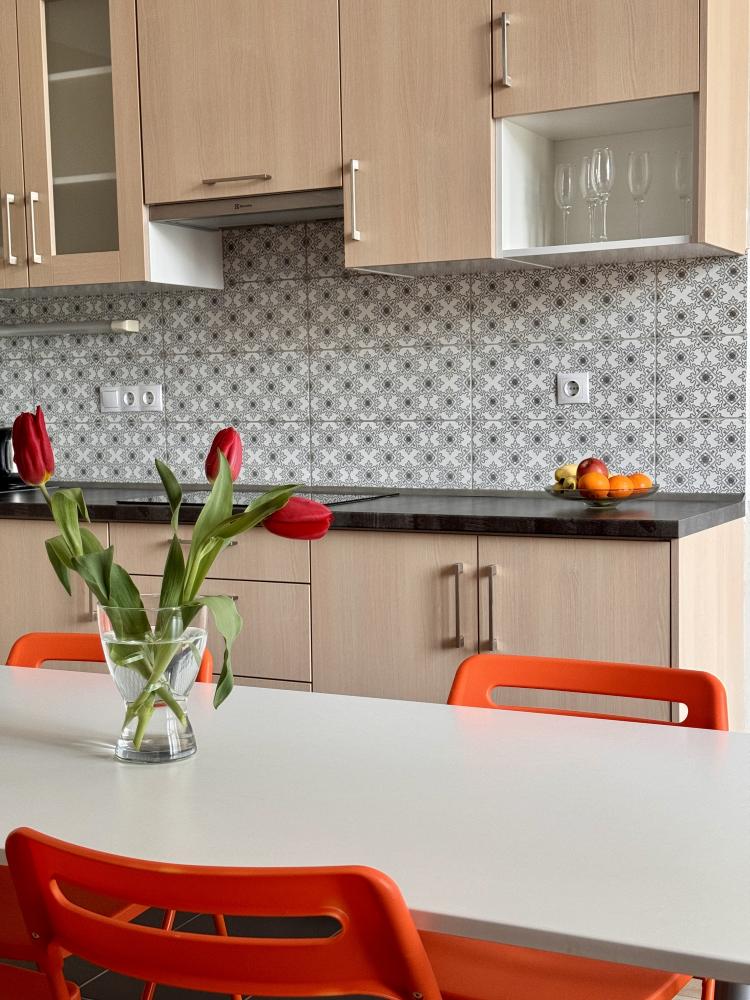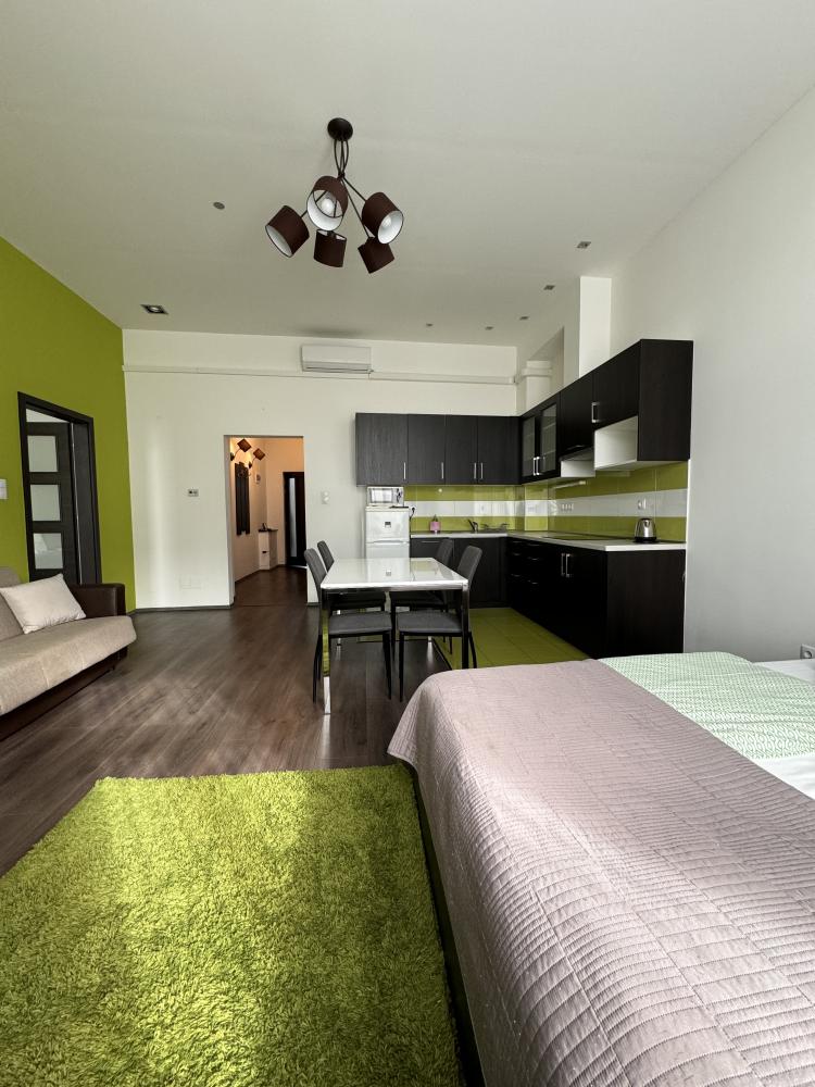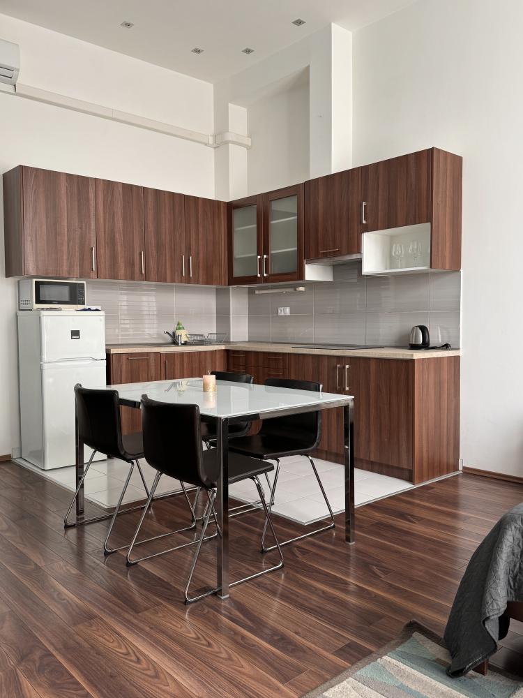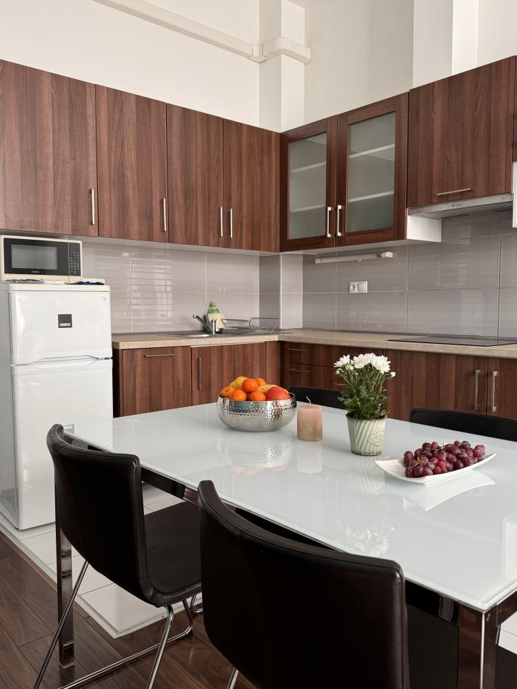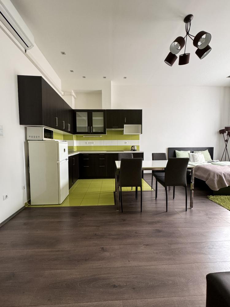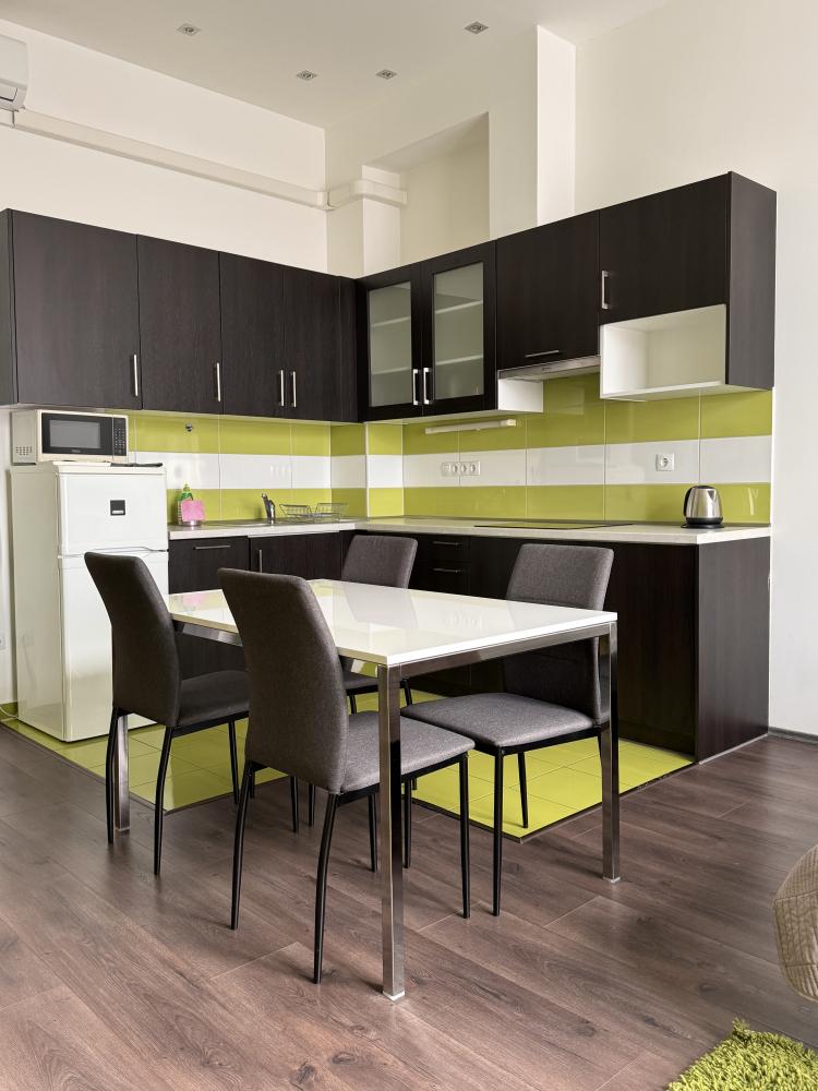 Légkondicionált apartmanjainkban egy légtérben található a konyha az étkezővel és a nappalival,